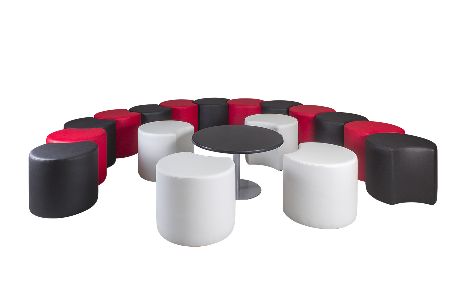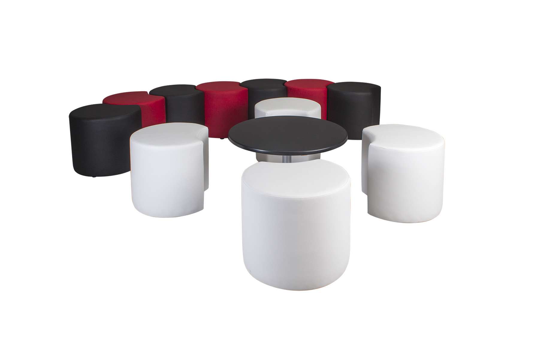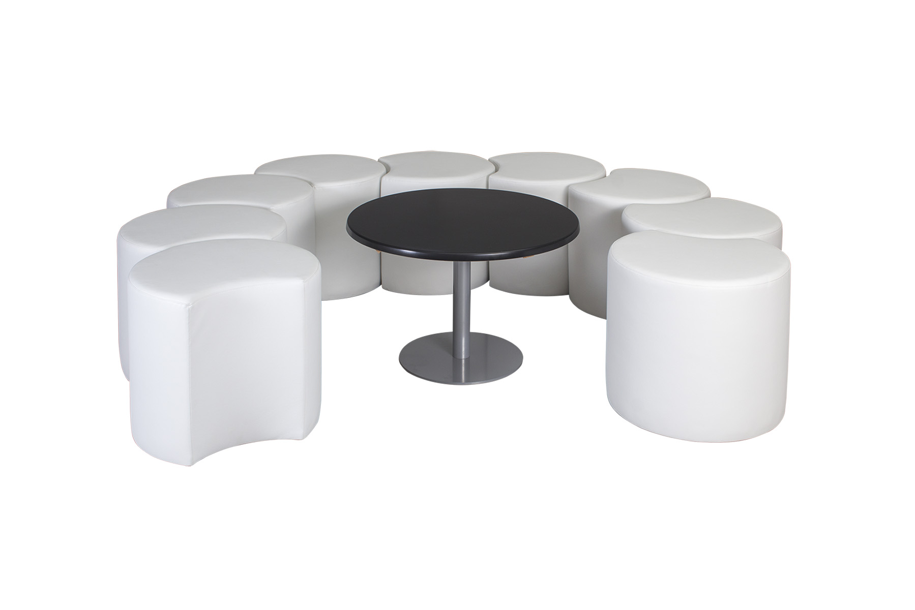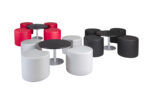 25 mm-es laminált asztallap, színterezett 60×1,5 mm átmérőjű acélcső váz.