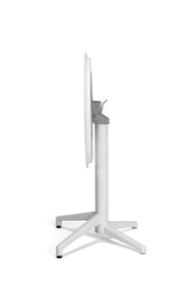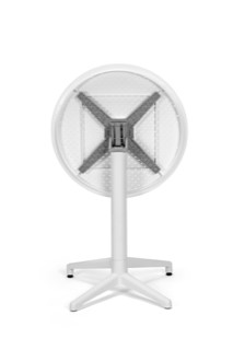 Alumíniumvázas asztalbázis, d60cm-es kör alakú, üvegszállal erősített műanyag, fix és dönthető asztallappal. Kültéri és beltéri használatra is ajánlott.