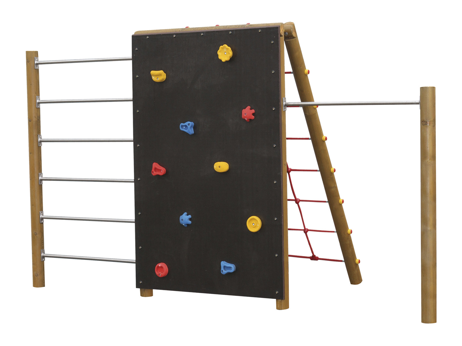Nagy kombinált mászó. Kültéri, udvari, kerti fajáték óvodák, játszóterek, parkok számára.Alapterület: 1,4×4 m, területigény: 5×7 m, esésmagasság: 1,95 m. Játszótéri eszközeink megfelelnek az MSZ-EN 1176-os szabvány biztonságtechnikai előírásainak. Az eszközök elhelyezésénél figyelembe kell venni az esési felületek biztosítását, melyet az MSZ-EN 177-es szabvány szerint az 1 m-t meghaladó szabadesés magasságú játékoknál ütéscsillapító burkolattal kell ellátni. Az ár a telepítés és ütéscsillapítás költségeit nem tartalmazza. Ezzel kapcsolatosan kérje külön árajánlatunkat!