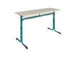 Natasa 2 személyes állítható magasságú tanulói asztal: vázszerkezet: 25 és 30 mm-es átmérőjű acél cső, szinterezett, melyeket szintezhető padlóvédő műanyag papuccsal látunk el, asztallap: 18 mm vastag natúr faforgács lemez 2 oldalon dekoritozva (asztallap alatt fehér színű ellenhúzó dekorit, asztallapon választható színű dekorit), sarkos kivitel, 2 mm vastag ABS élzárással. Asztallap mérete: 130*50 cm. A 3-5-ös korcsoport számára állítható méret igazodik az eltérő magasságú gyermekek testmagasságához. Opcionálisan rendelhető füzettartó polc vagy füzet – és széktartó rács az asztallap alá.