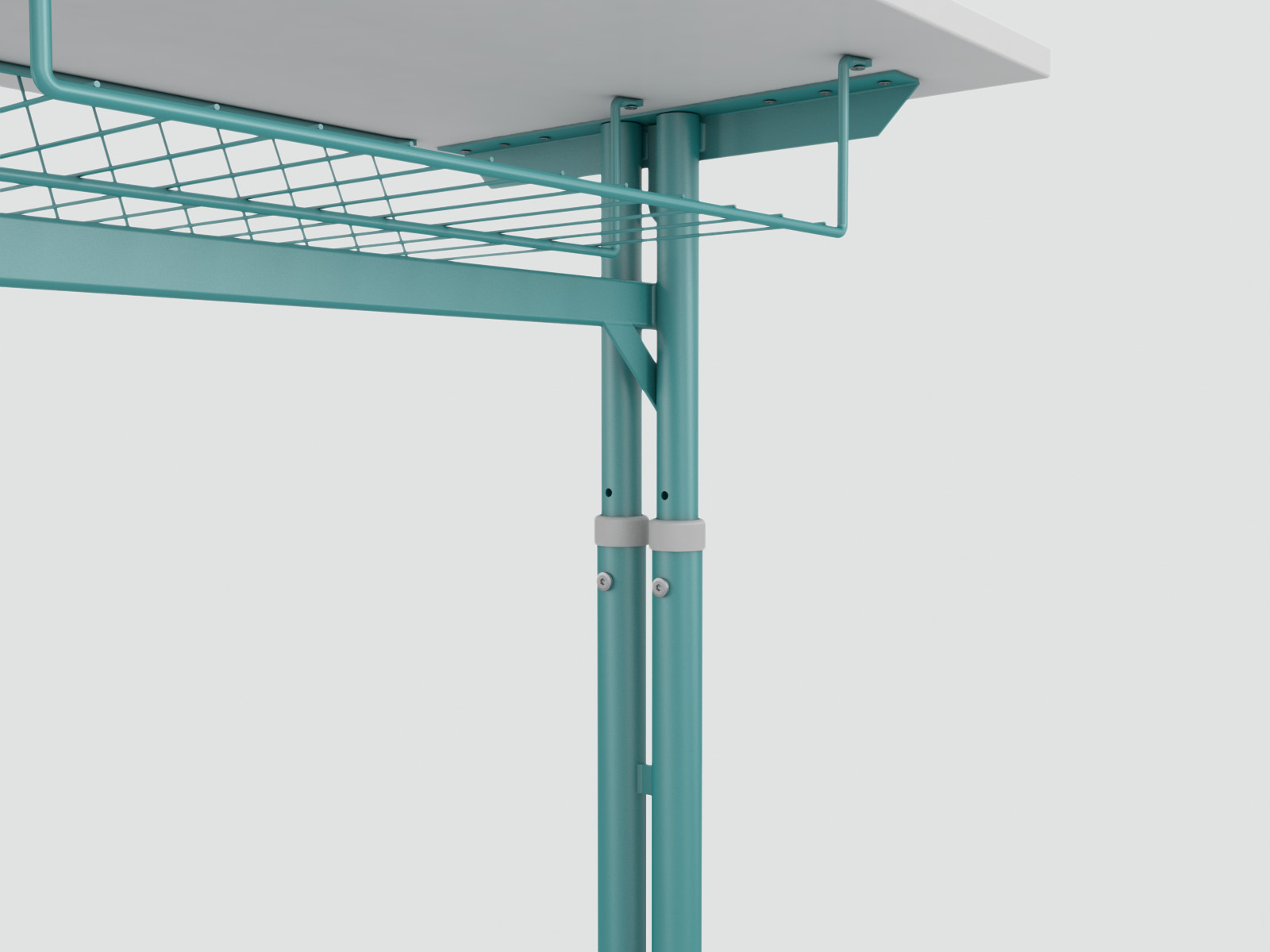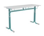 Natasa 2 személyes állítható magasságú tanulói asztal: vázszerkezet: 25 és 30 mm-es átmérőjű acél cső, szinterezett, melyeket szintezhető padlóvédő műanyag papuccsal látunk el, asztallap: 18 mm vastag natúr faforgács lemez 2 oldalon dekoritozva (asztallap alatt fehér színű ellenhúzó dekorit, asztallapon választható színű dekorit), sarkos kivitel, 2 mm vastag ABS élzárással. Asztallap mérete: 130*50 cm. A 5-7-es korcsoport számára állítható méret igazodik az eltérő magasságú gyermekek testmagasságához. Opcionálisan rendelhető füzettartó polc vagy füzettartó rács az asztallap alá.