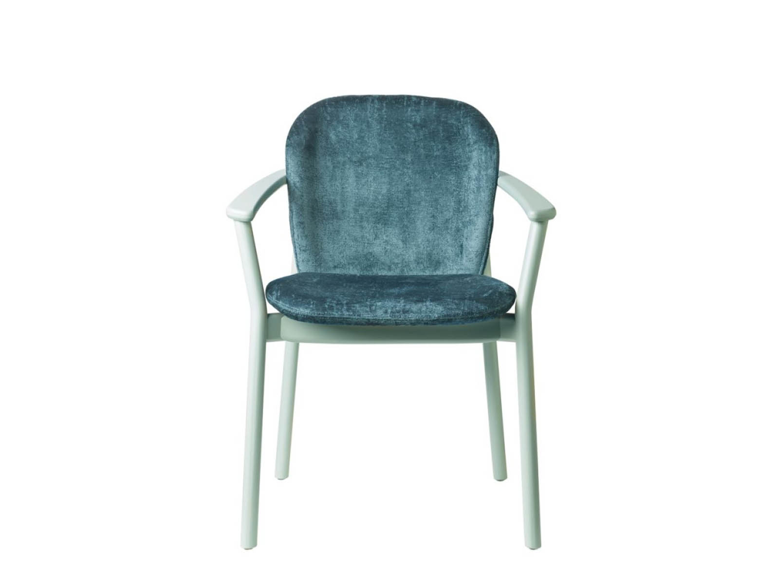 Favázas szék, a váz választható kőris- és bükkfából. Az ülőfelület és háttámla magas kopásállóságú kárpittal van bevonva. Színenként 2 db-os egységekben rendelhető.