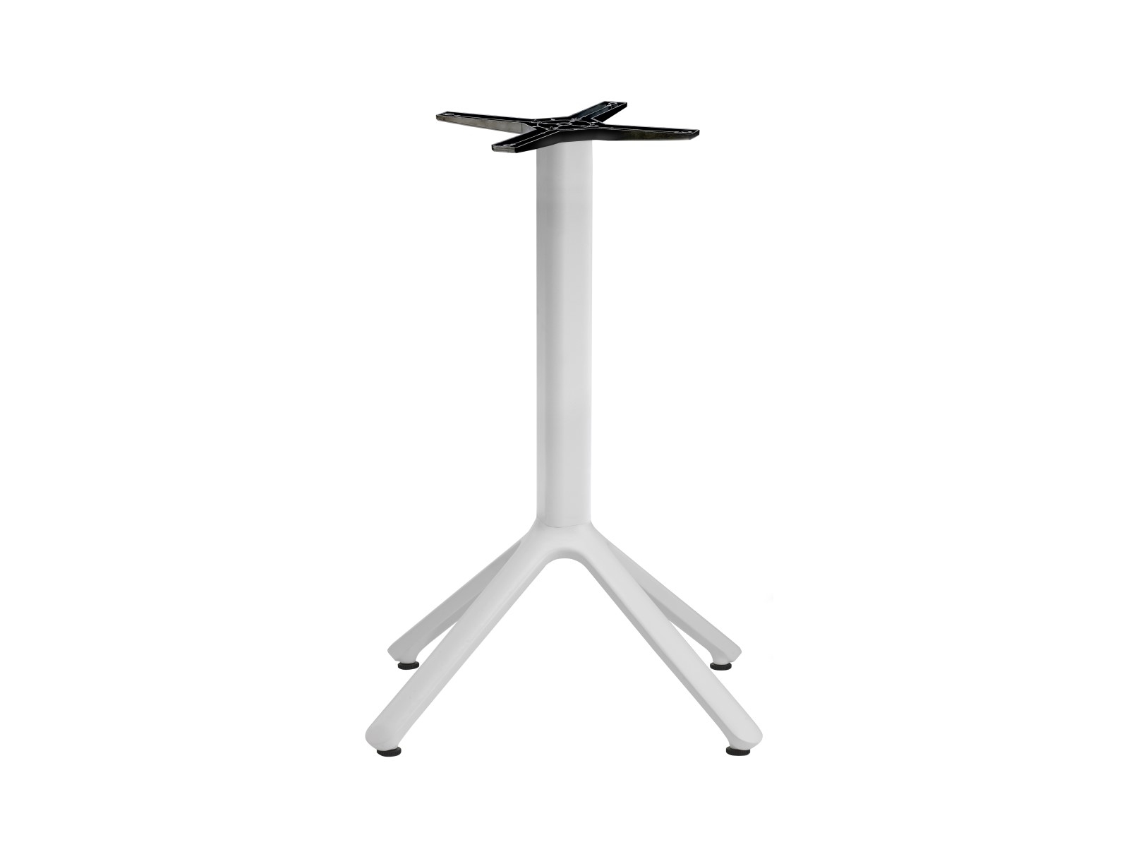 Központi alumínium csőoszlopos asztalbázis, szintezőtalpakkal, max. d90, vagy 80×80 cm-es asztalapokhoz. Magassága 73cm. Kültérre is ajánlott.