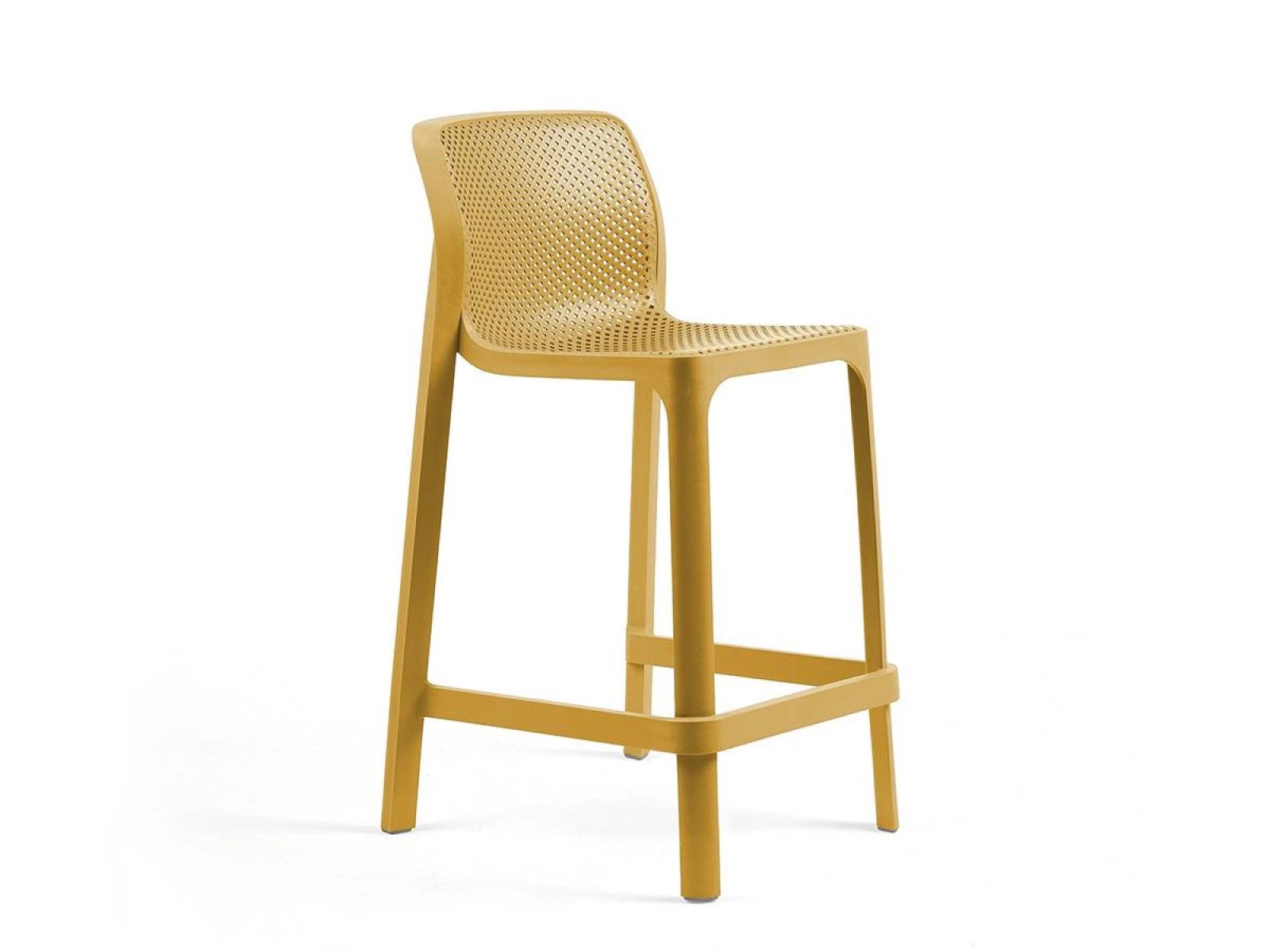 Üvegszállal erősített egyben formaöntött, UV álló matt felületű műanyag bárszék, csúszásgátló lábvégekkel. Ülésmagassága 65 cm. Kültérre is ajánlott, rakásolható. Színenként 4 db-os egységekben rendelhető.