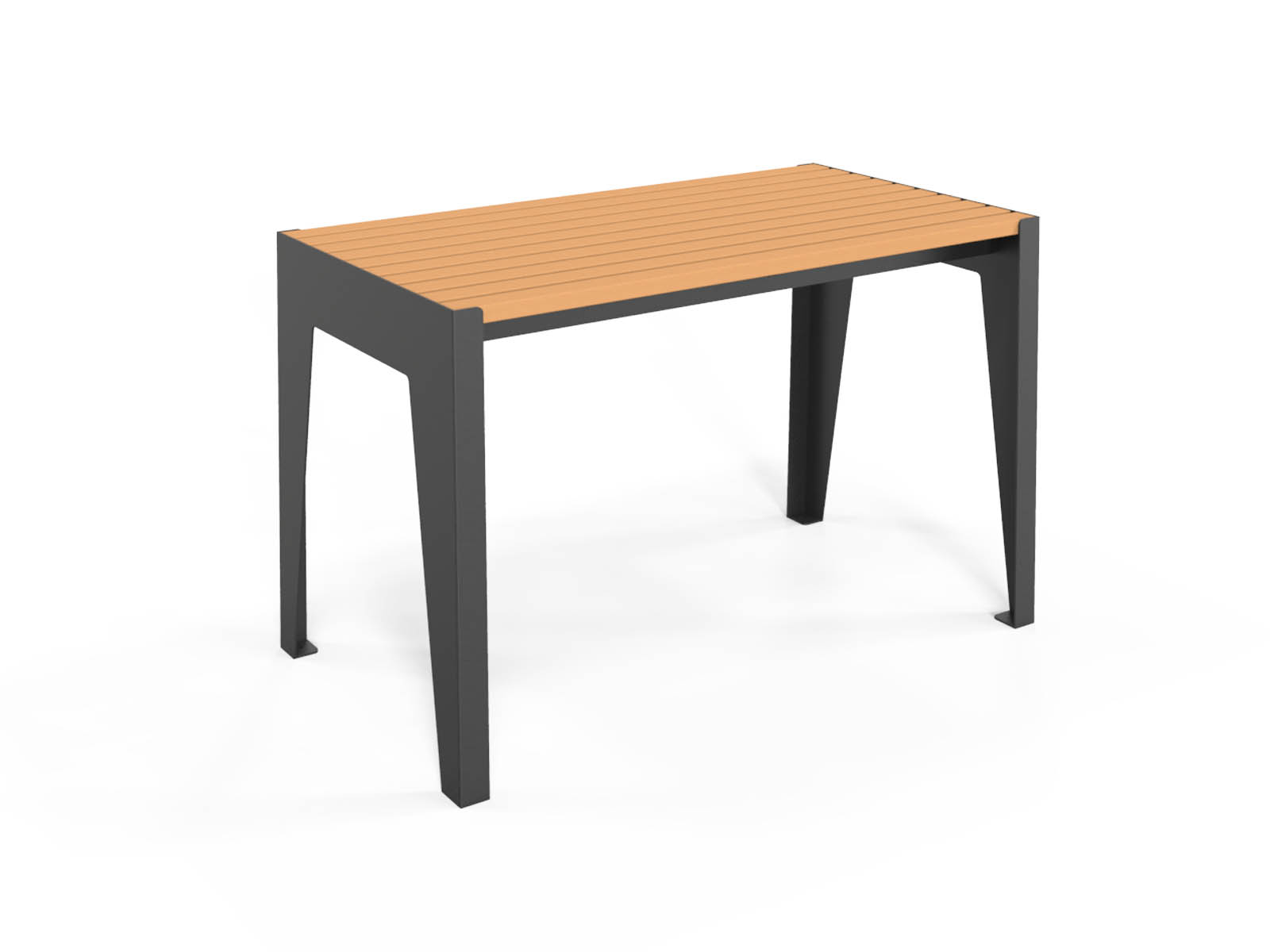 NORD asztal, A vázszerkezet 4mm-es horganyzott acéllemez és egyéb acél elemek felhasználásával készül, kültéri porfesték bevonattal felületkezelve, WPC lécekkel szerelve.