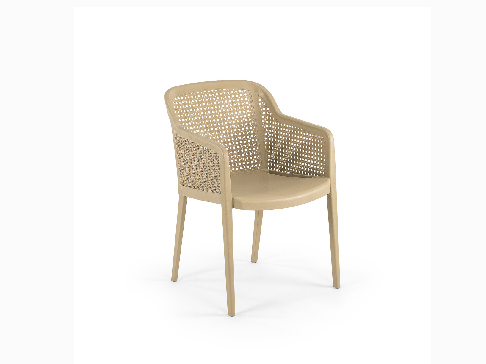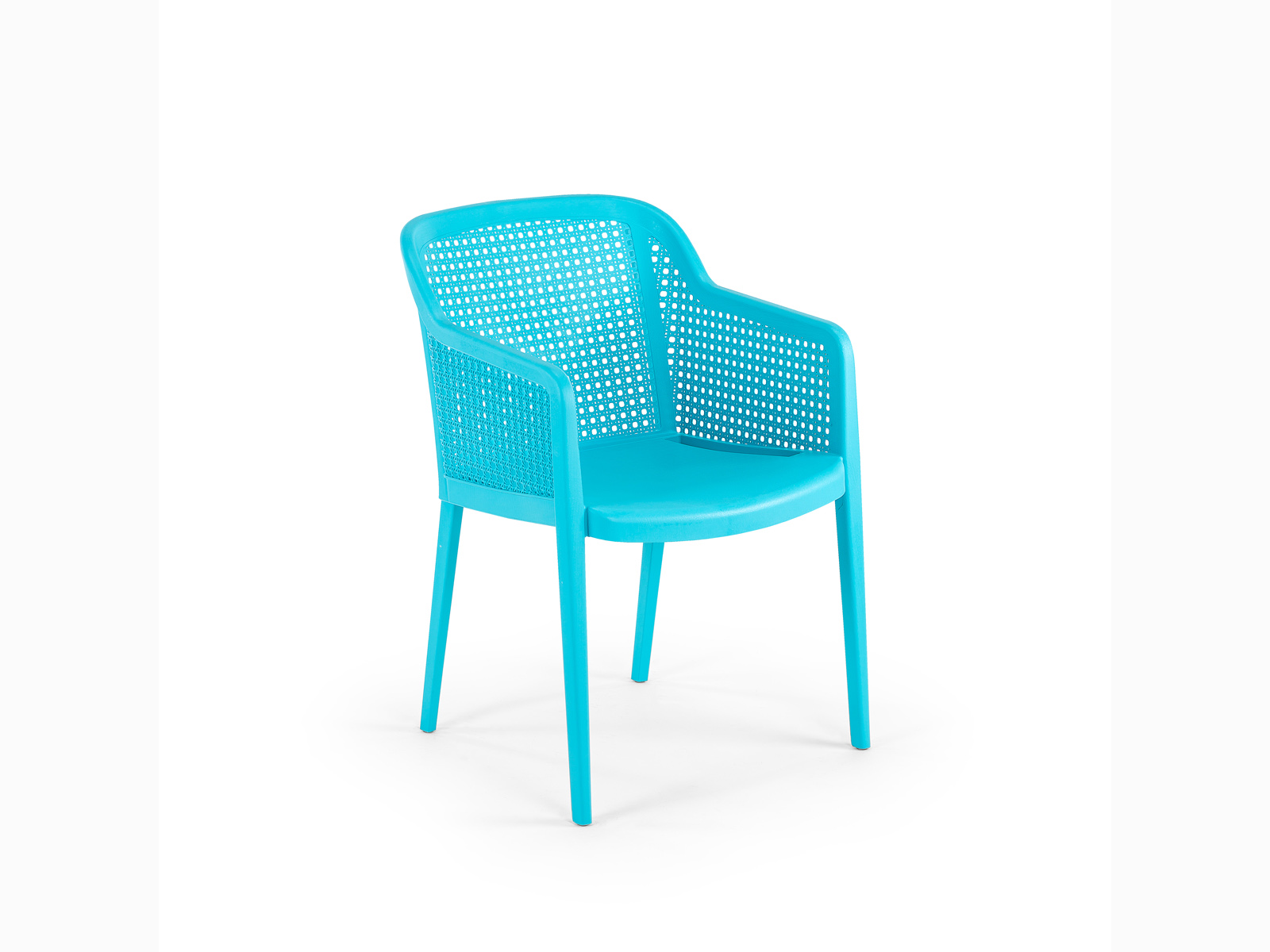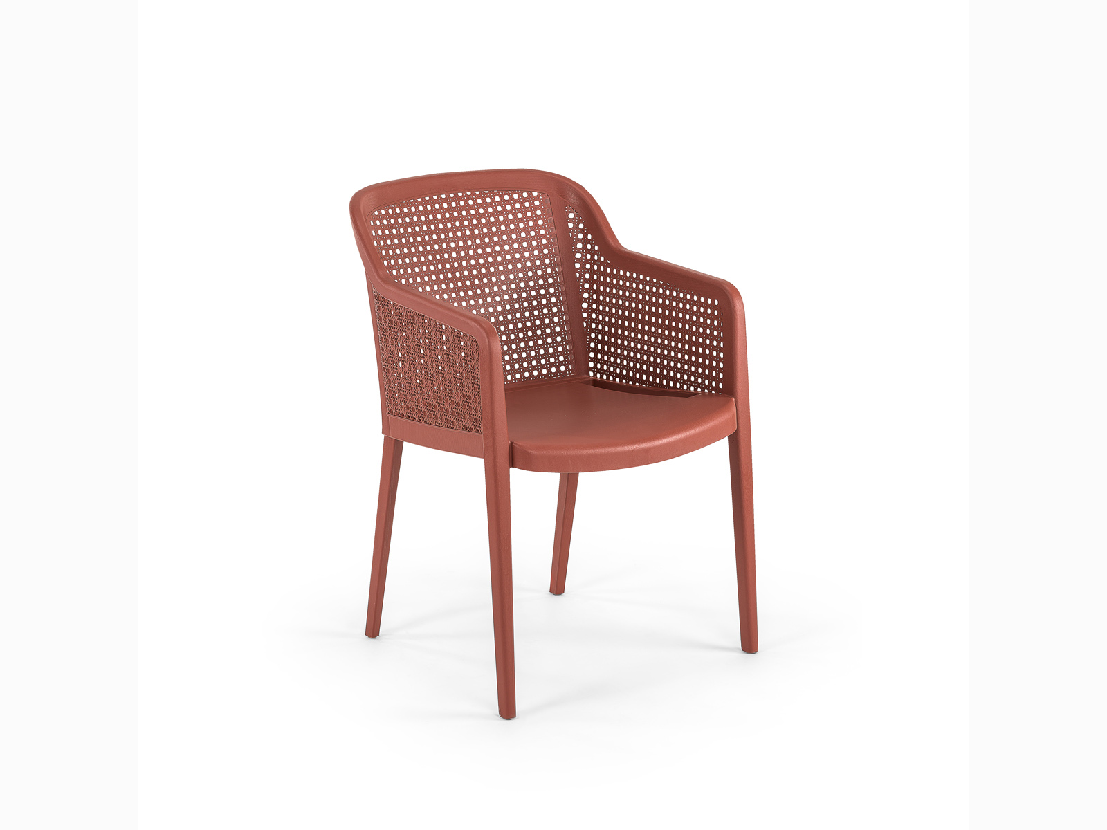 Üvegszállal erősített, egyben formaöntött műanyag, karfás szék. Rakásolható. Kültérre is ajánlott. Ülőpárna elérhető hozzá.