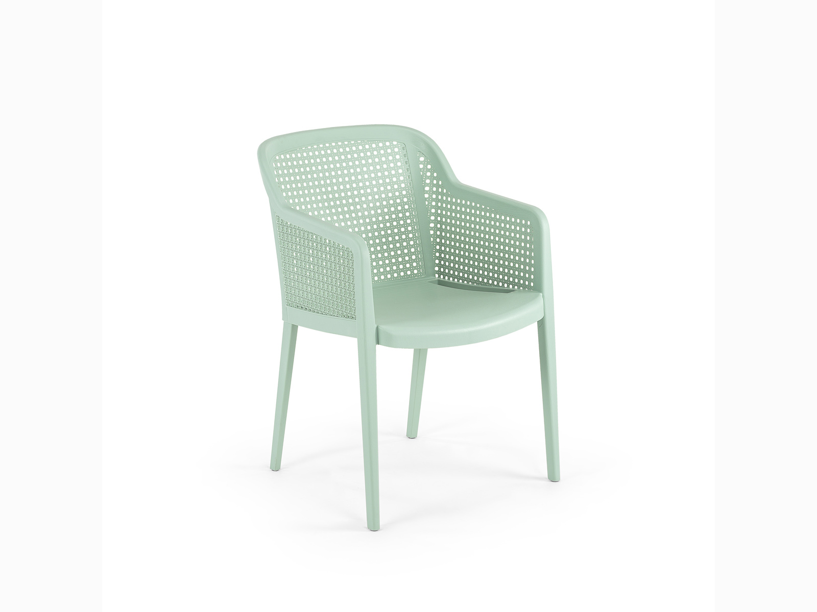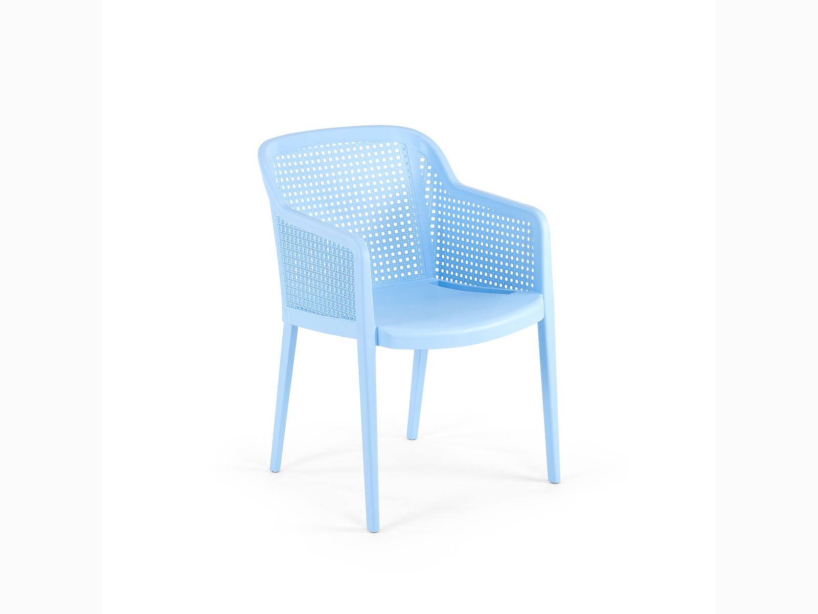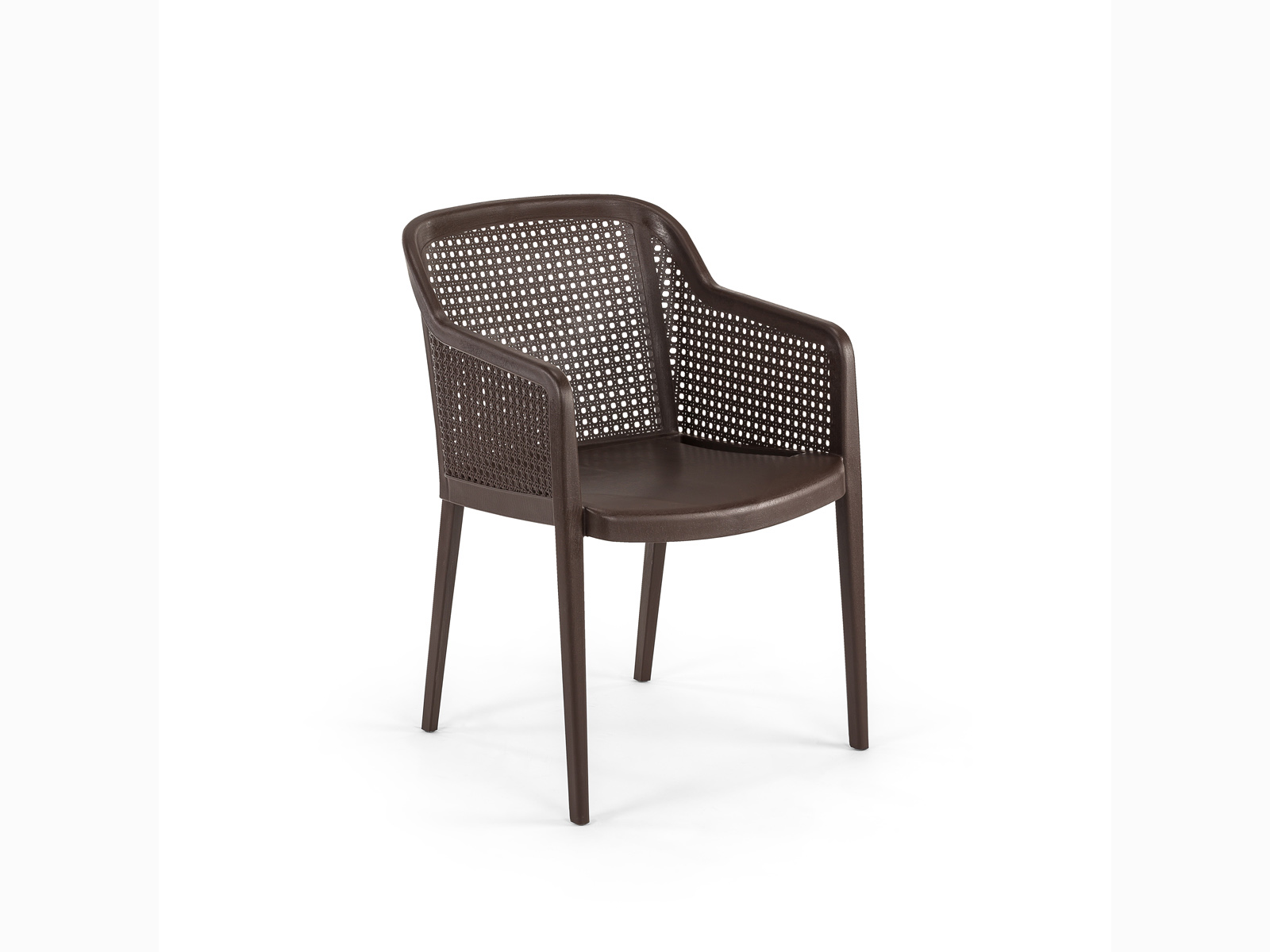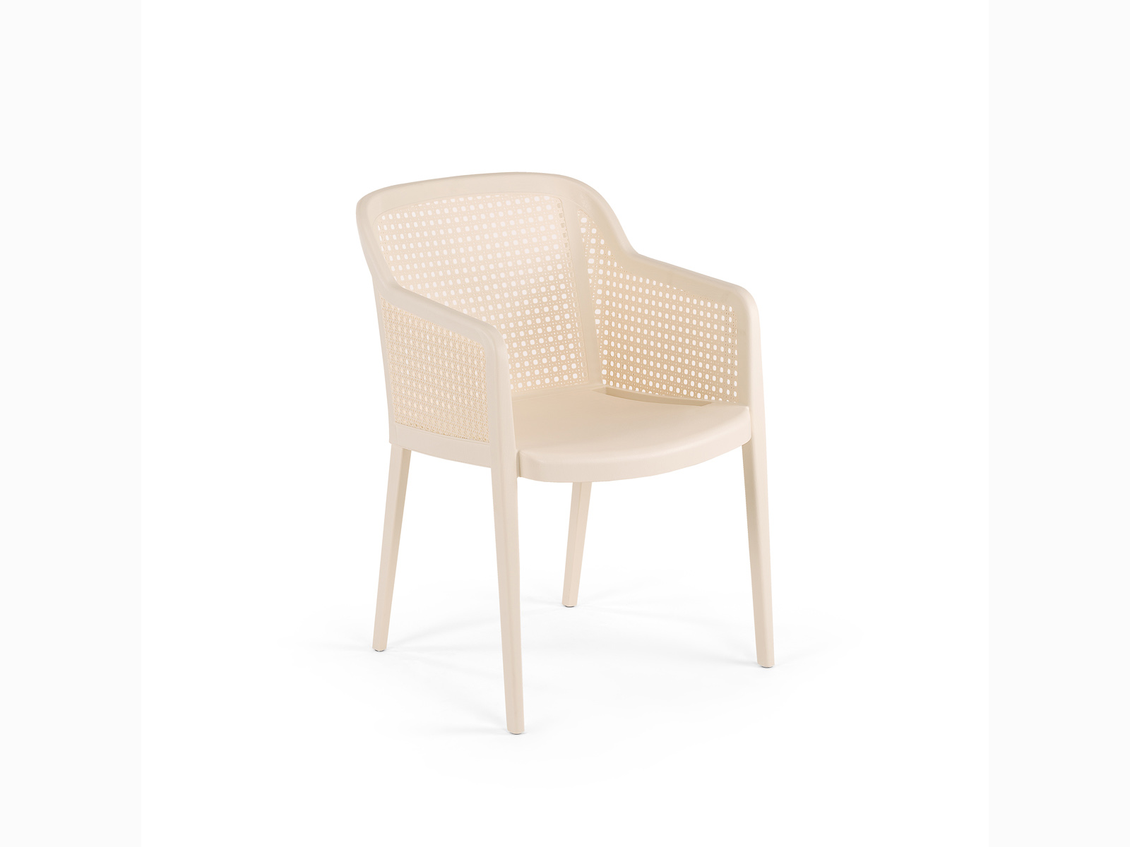 Üvegszállal erősített, egyben formaöntött műanyag, karfás szék. Rakásolható. Kültérre is ajánlott. Ülőpárna elérhető hozzá.