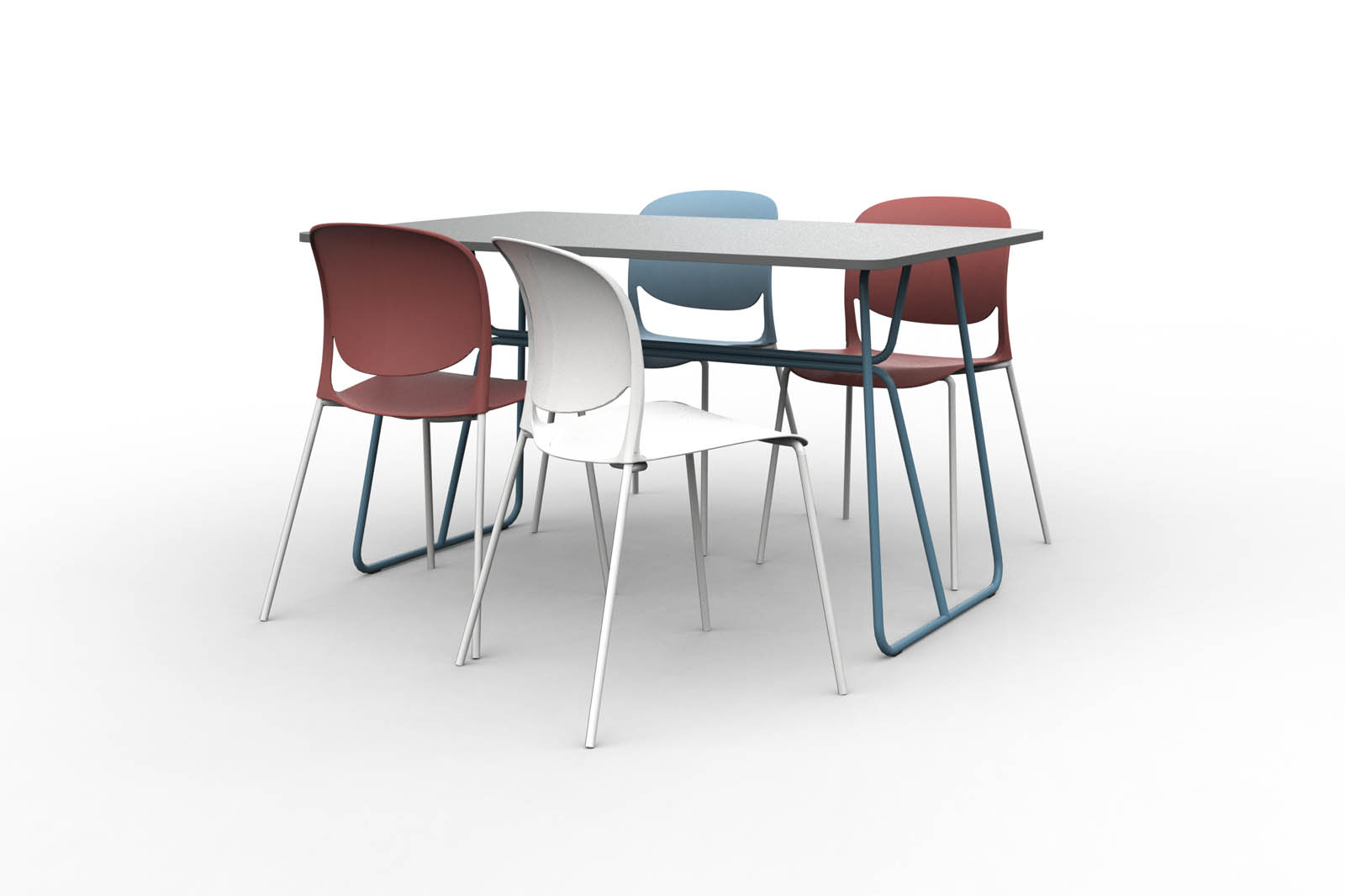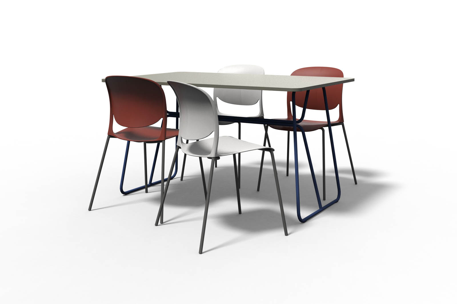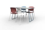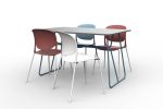 A garnitúra tartalmaz 1 db Béta A asztalt, 135×90 cm-es, 18 mm-es laminált bútorlap asztallappal, és 4 db Outline 610 fémvázas, műanyag palástos széket.