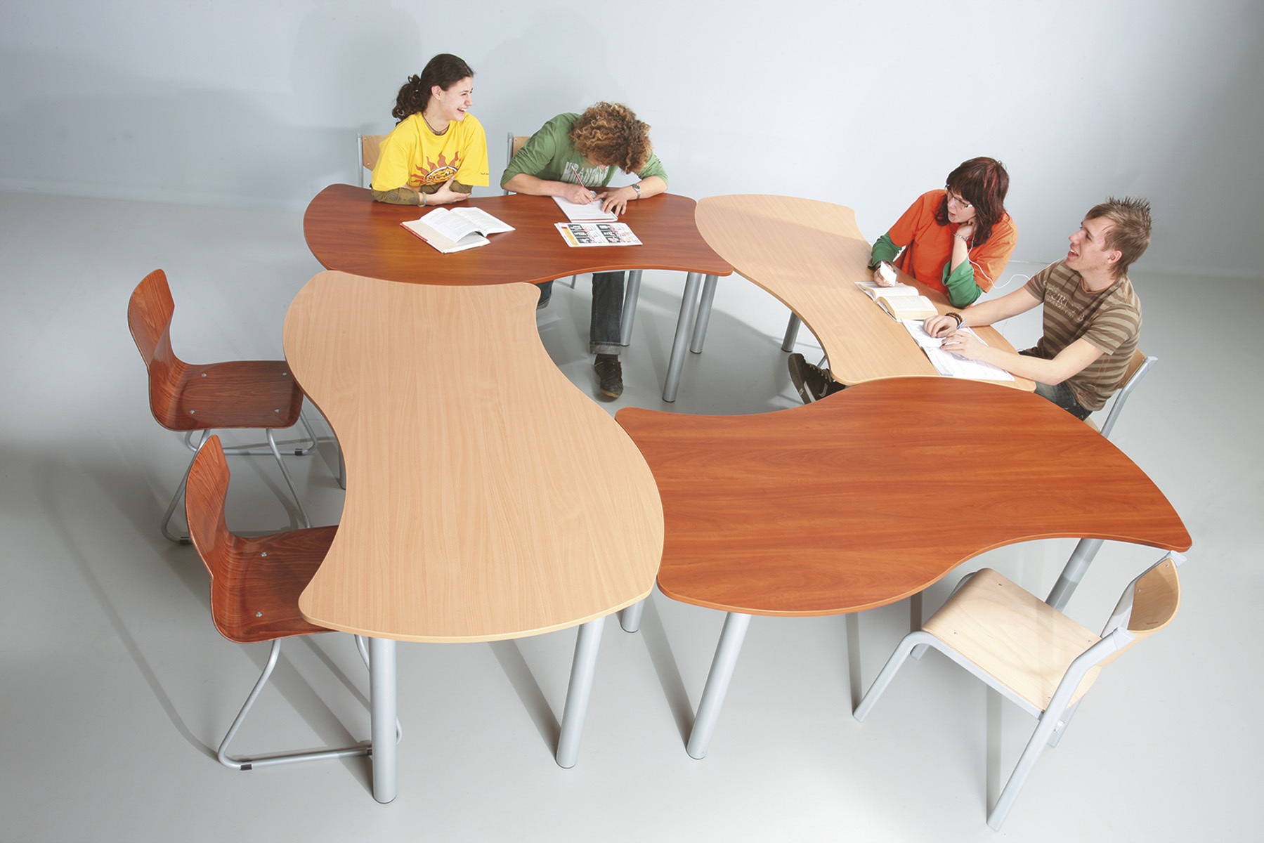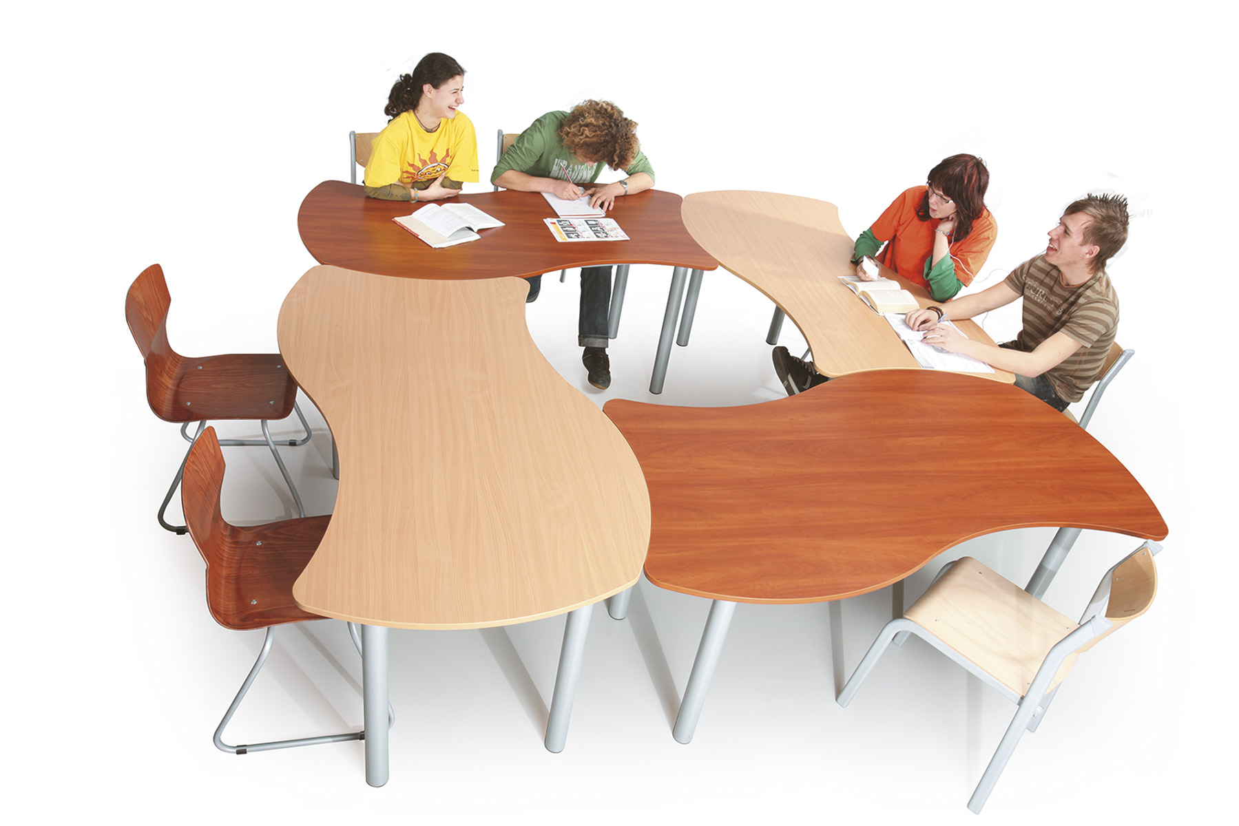 A mai modern oktatásban szükség van olyan asztalokra, melyekből könnyen és gyorsan ki lehet alakítani szeparált munkacsoportokat. Ezért ajánljuk puzzle asztalainkat, mellyel Ön tetszőlegesen alakíthat ki munkahelyeket. Vázszerkezet: 40 mm átmérőjű acél cső, szinterezett, műanyag végzáró elem, asztallap: 18 mm vastag laminált bútorlap, 2 mm vastag ABS élzárás.