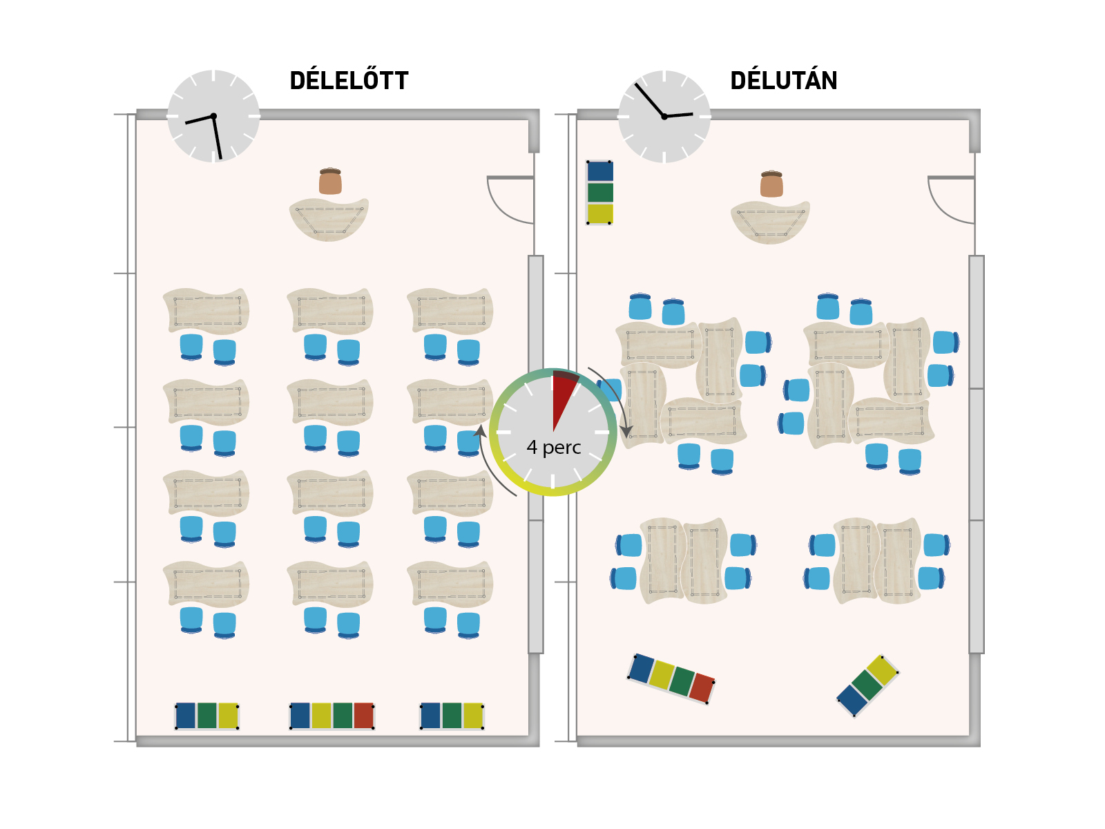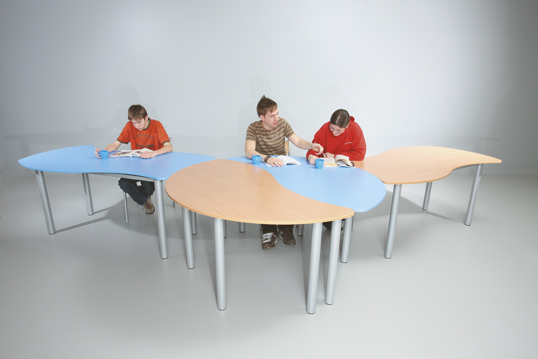 A mai modern oktatásban szükség van olyan asztalokra, melyekből könnyen és gyorsan ki lehet alakítani szeparált munkacsoportokat. Ezért ajánljuk puzzle asztalainkat, mellyel Ön tetszőlegesen alakíthat ki munkahelyeket. Vázszerkezet: 40 mm átmérőjű acél cső, szinterezett, műanyag végzáró elem, asztallap: 18 mm vastag laminált bútorlap, 2 mm vastag ABS élzárás.