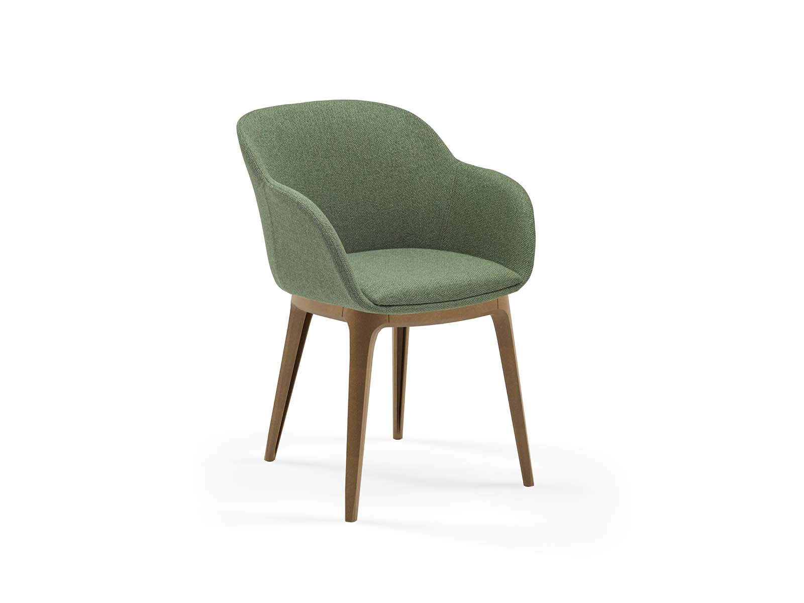 A Shell termékcsalád karfás, kárpitozott, fa lábú szék verziója kitűnő eleme lehet egy olyan vendéglátóhelynek, amely számára fontos a letisztultság és a kényelem. A bükk faláb megtestesíti a skandináv eleganciát és biztos tartást ad a széknek és felhasználójának.