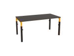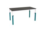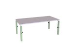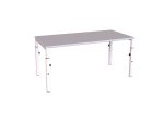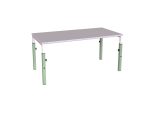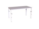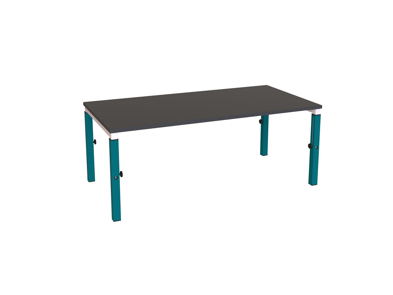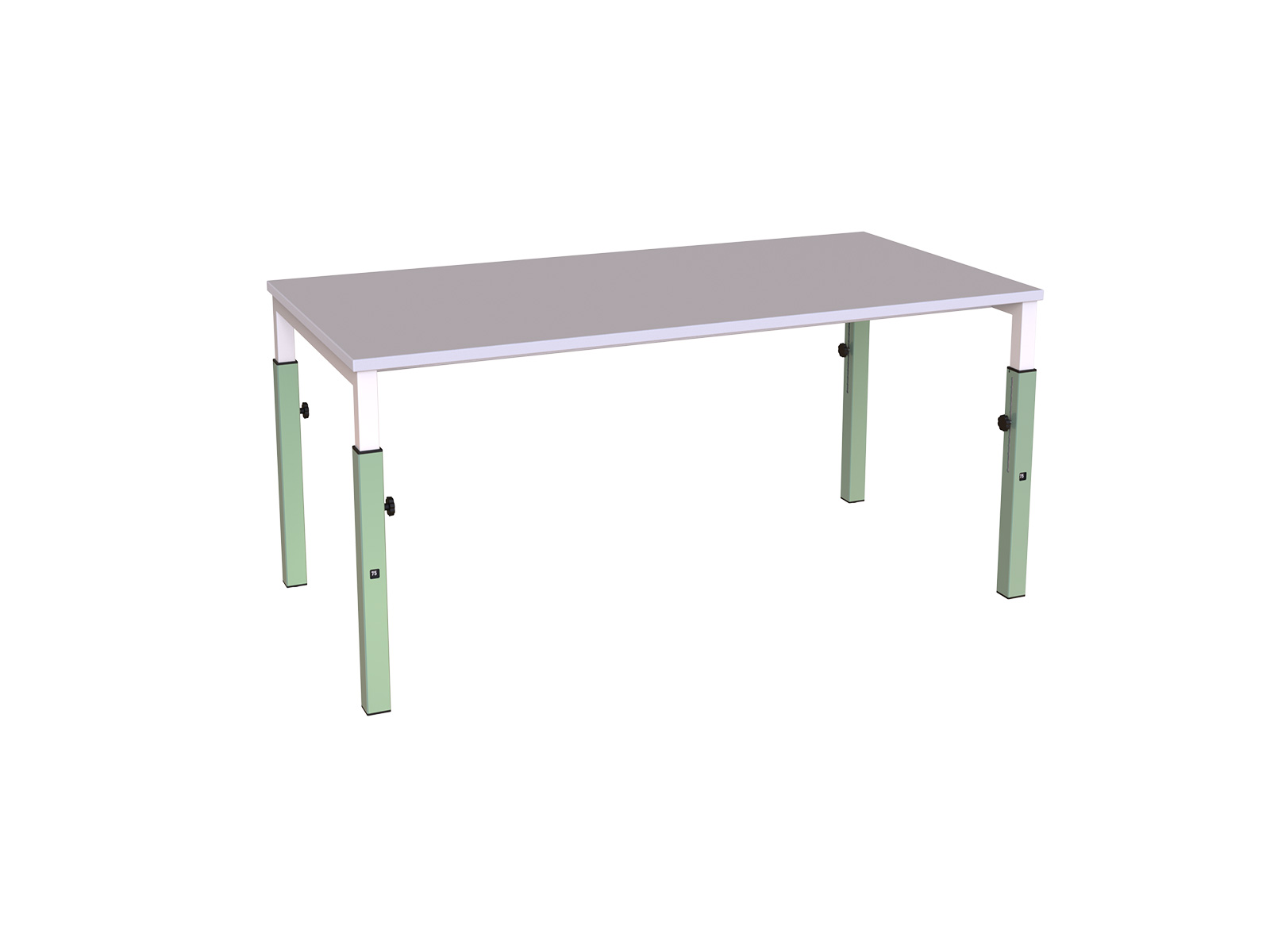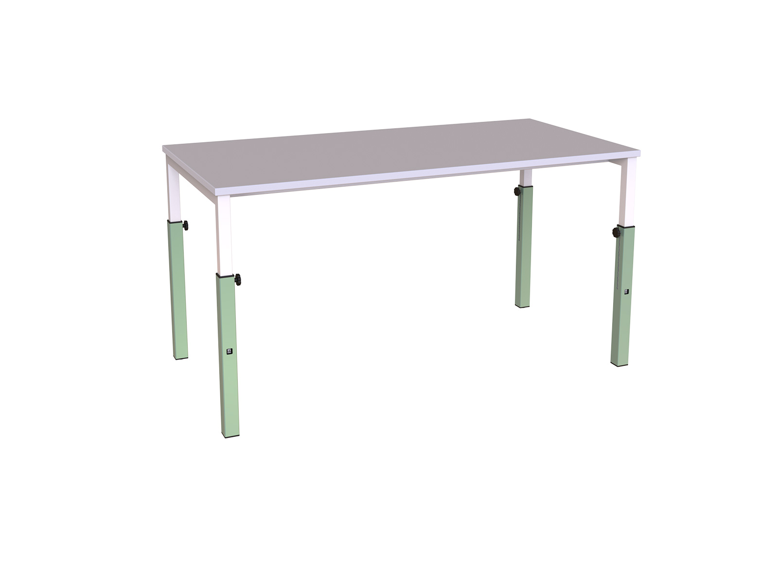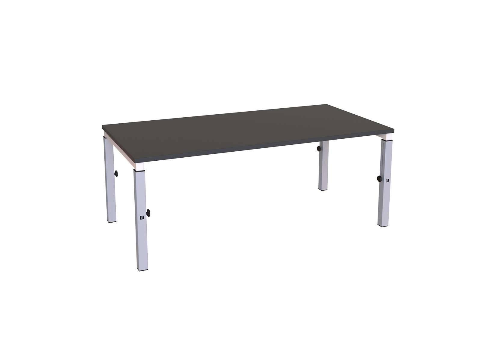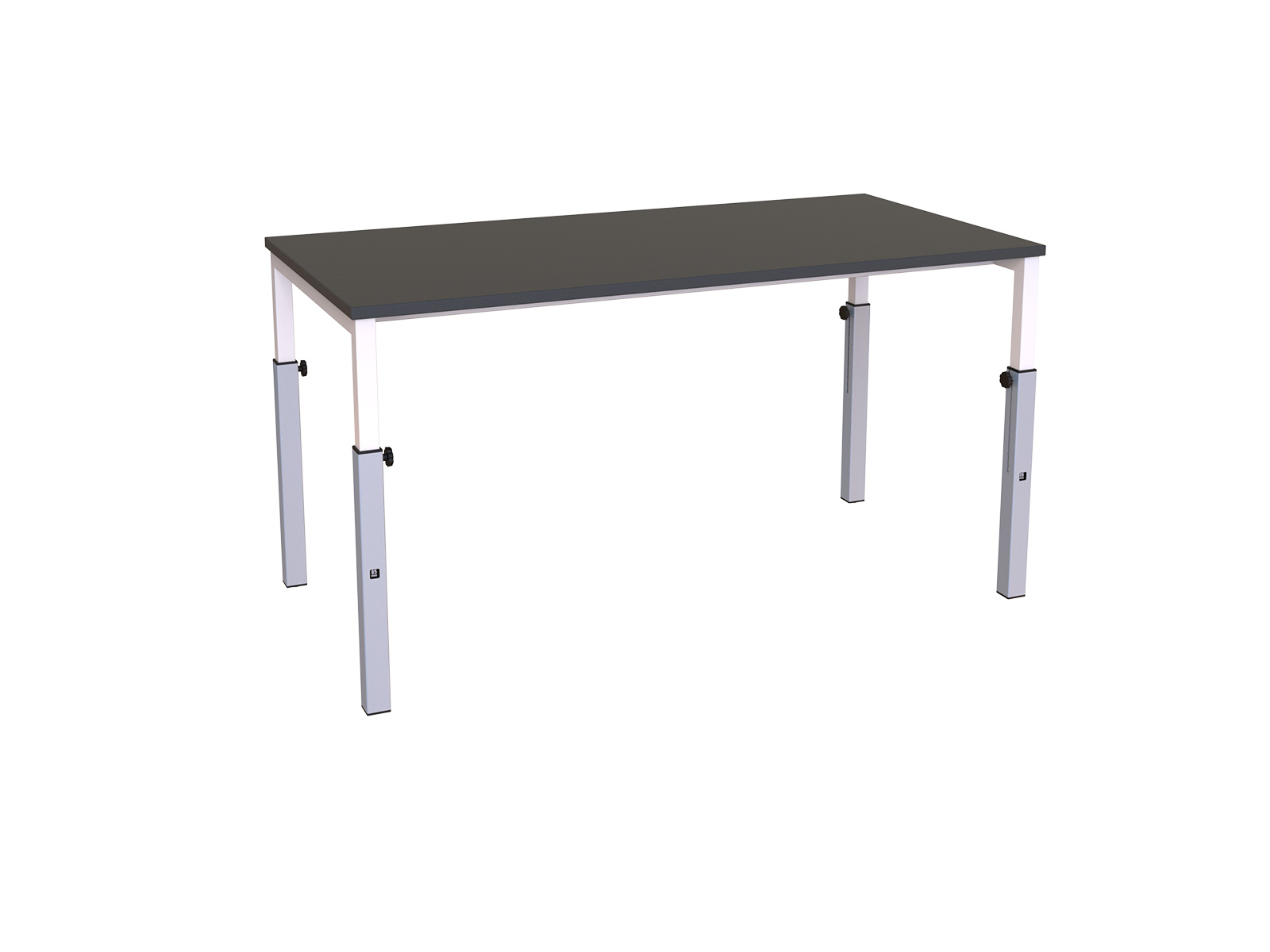 Mechanikusan állítható magasságú multifunkciós asztal, ami alkalmas akár íróasztalnak, tárgyalóasztalnak, lerakóasztalnak, vagy bármilyen funkció betöltésére, ami asztalt kíván. Az asztallap 25 mm vastag laminált faforgács lap 2 mm vastag ABS élzárással. A vázszerkezet teleszkopikusan egymásba csúszó 50×50 és 40×40 mm-es acél zártszelvények segítségével állítható. 12 fix magasságra lehet beállítani az asztalt, piskóta alakú horony segítségével. A marokcsavar kitekerésével a rögzítő tönk benyomható, így csúsztatható a láb a következő helyzetbe, melynek aktuális szám megjelölését a láb külsején levő lyukon keresztül láthatjuk. A fém lábak festésének sértetlenségét és a masszív tartást a műanyag hüvely biztosítja.