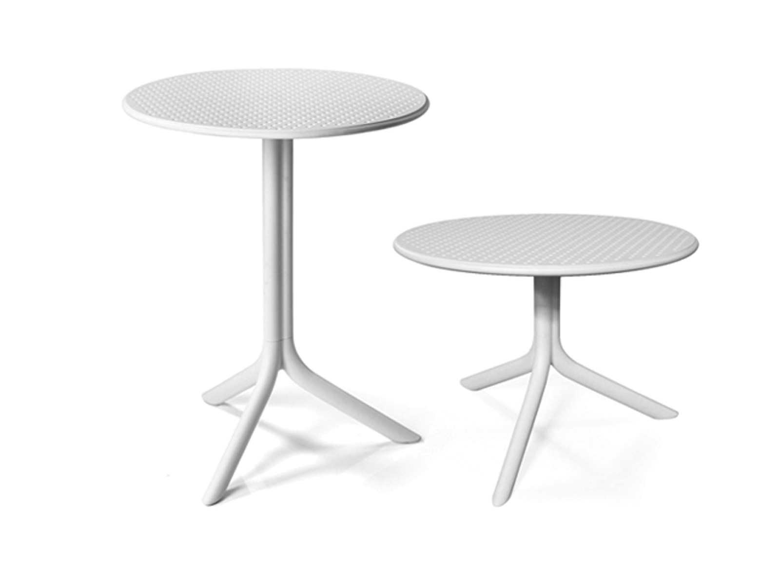 Központi oszlopos, üvegszállal erősített UV álló matt felületű, műanyagvázas asztal és kisasztal, csúszásgátló lábvégekkel, mintás műanyag asztallappal. Kültérre is ajánlott.