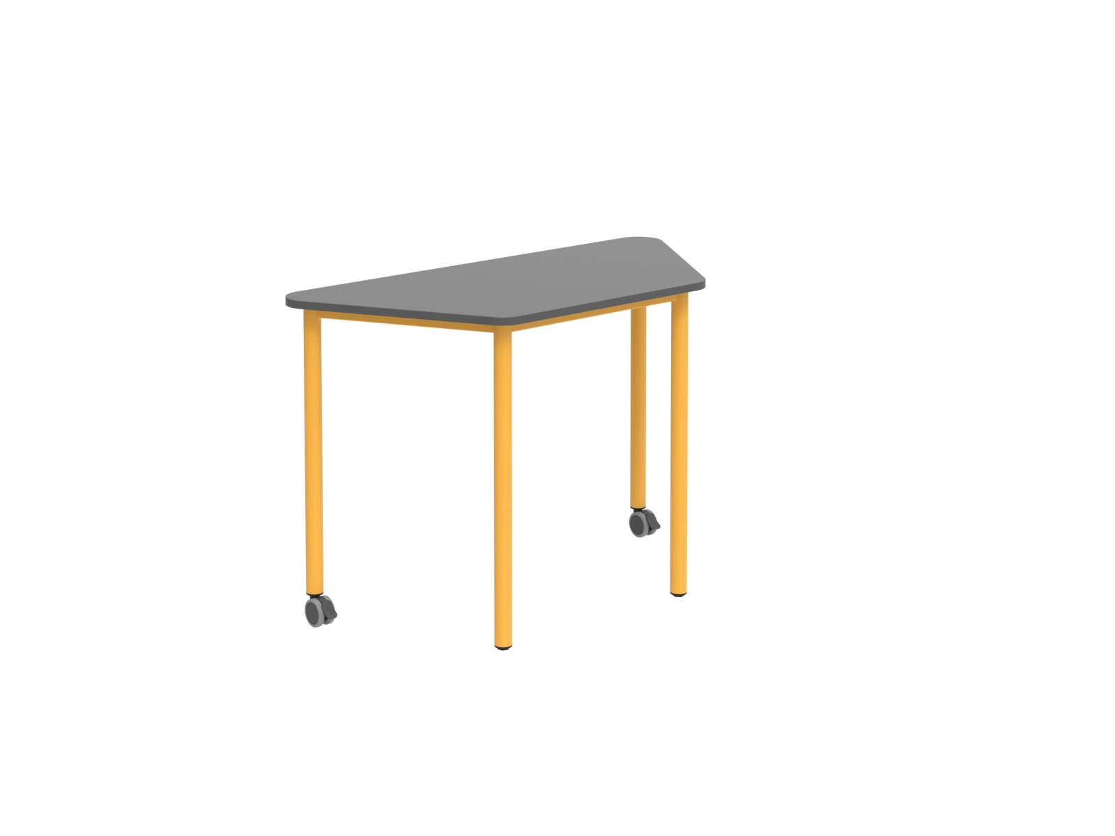 Vázszerkezet: 40 mm átmérőjű acél cső váz, asztallap alatt átkövővel a stabilítás érdekében. A 2 láb végén műanyag szintezőláb a másik két láb végén fékezhető görgővel. Asztallap: 18 mm vastag laminált bútorlap, 2 mm vastag ABS élzárás, íves. 1 személyes, nem rakásolható kivitel.