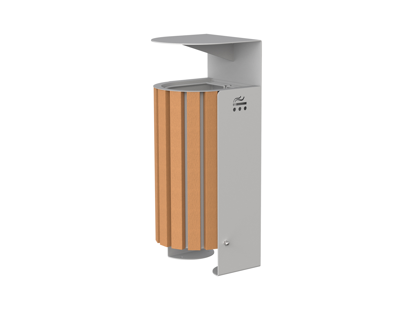 Tunnel kültéri hulladékgyűjtő. Gyűjtőkapacitás 50 liter. A vázszerkezet 4mm-es horganyzott acéllemez és egyéb acél elemek felhasználásával készül, kültéri porfesték bevonattal felületkezelve, WPC díszlécekkel szerelve, oldalpanelben elhelyezett csikkgyűjtővel.