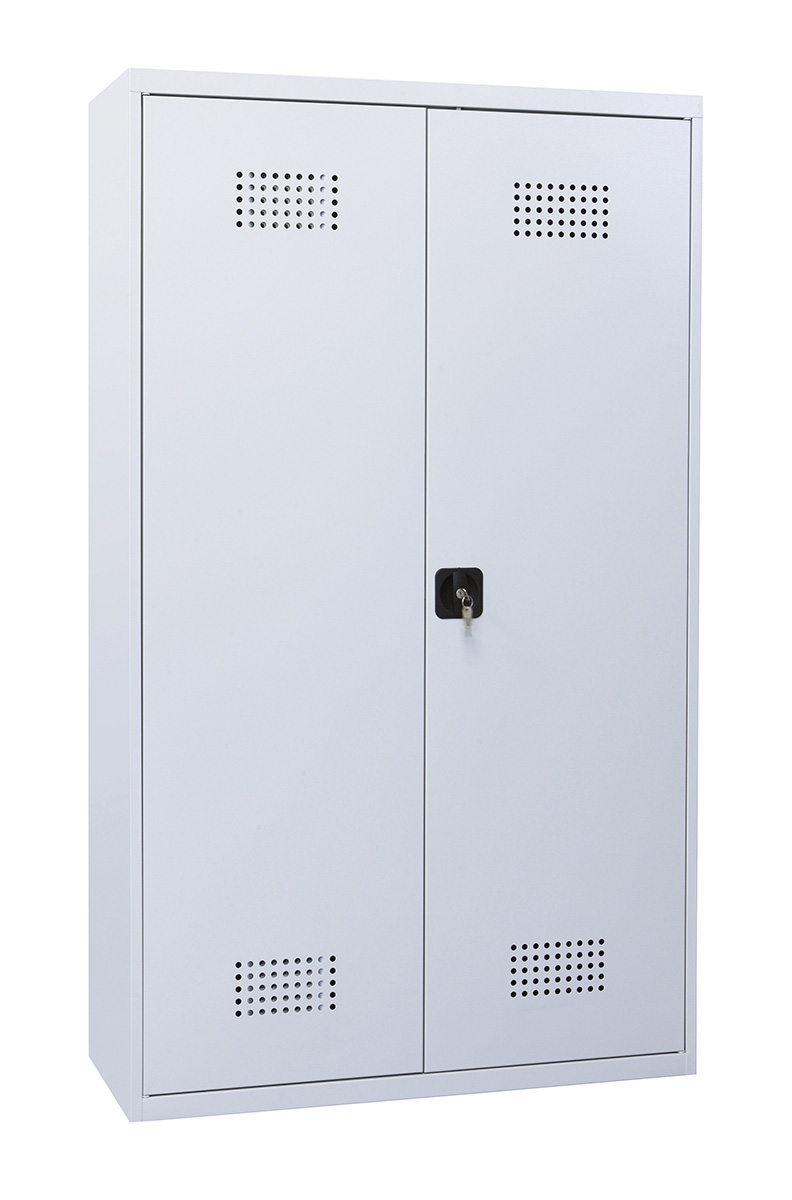 Veszélyes anyagok tárolására szolgáló kétajtós szekrény, amiben el lehet zárni a vegyszereket. Erős hegesztett szekrénytesttel rendelkezik, az ajtólap belső oldalán kalapprofil merevítéssel, 3 ponton záródó tanksapka zárral. A szekrény belsejében egy külön hengerzárral zárható belső trezor van. Az ajtókon alul és felül perforált szellőztetés van, a tetőlemezen 100 mm átmérőjű elszívó ventilátor előkészítés található. Alul 1 db rozsdamentes kármentő tálca van. A szekrény felülete elektrosztatikus porszórással kezelt.