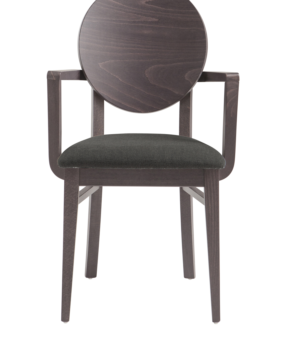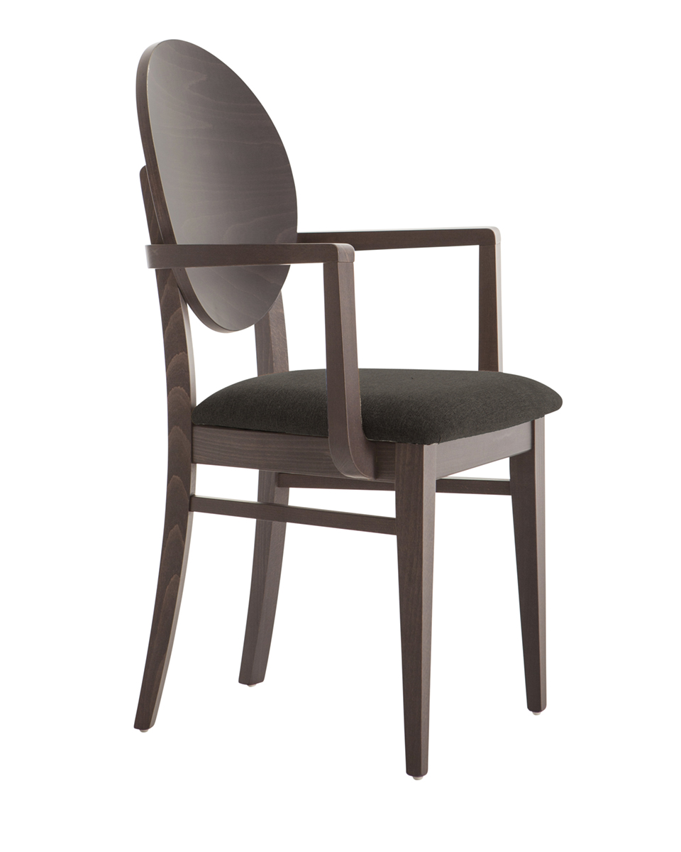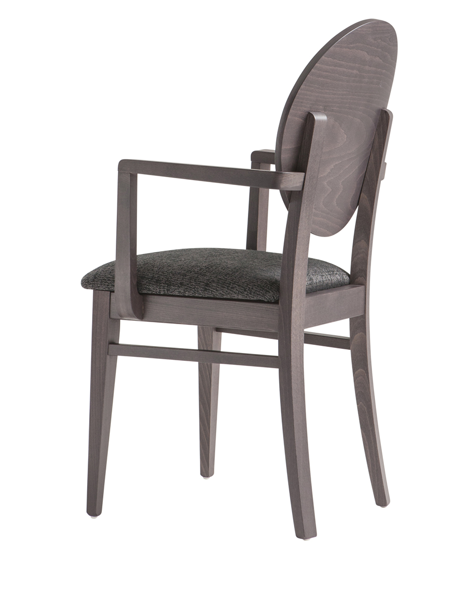 Kárpitozott ülőfelületű bükk favázas karfás szék, fa háttámlával.