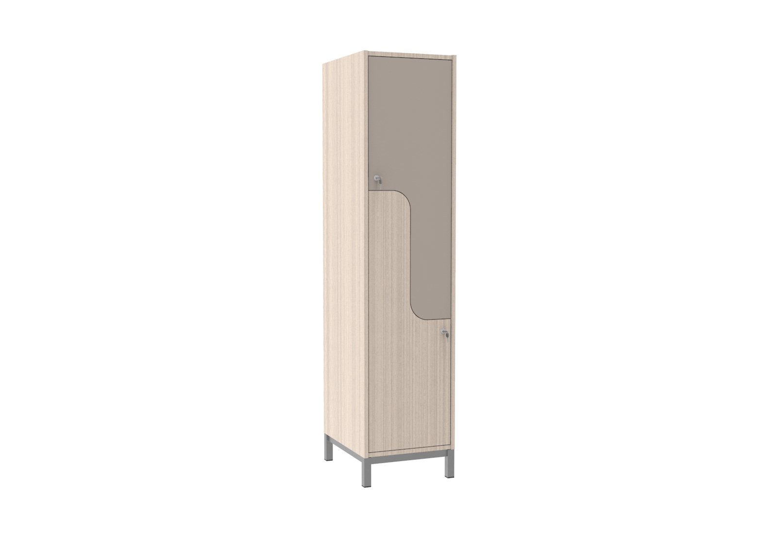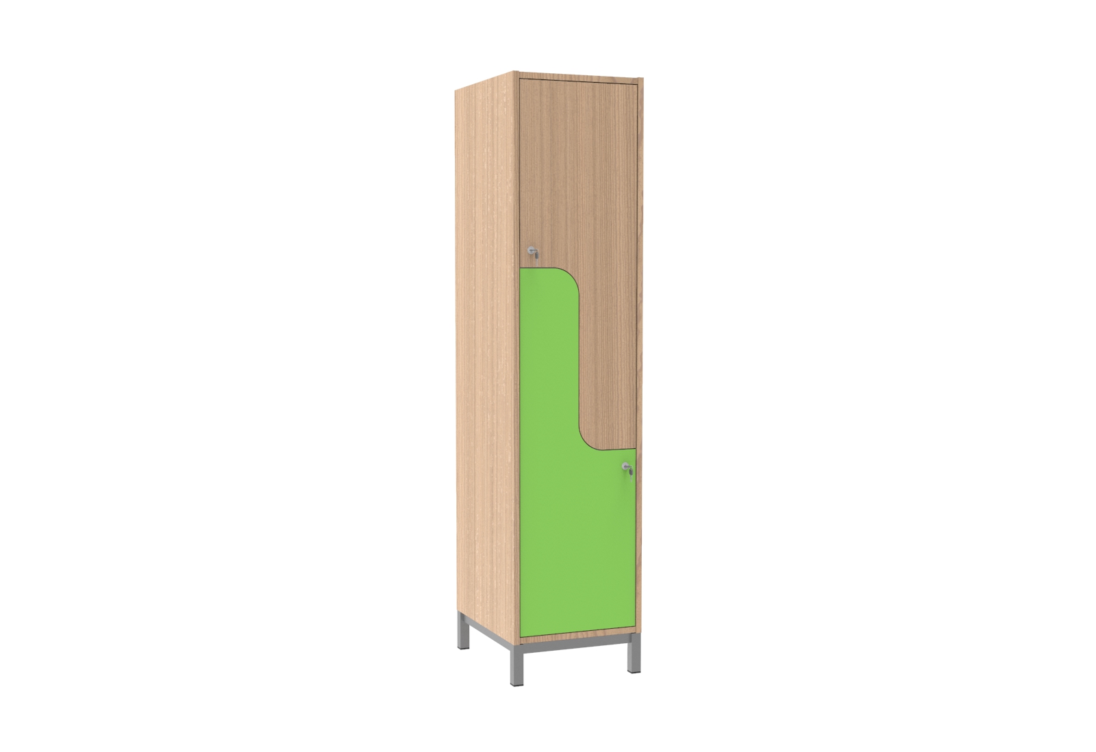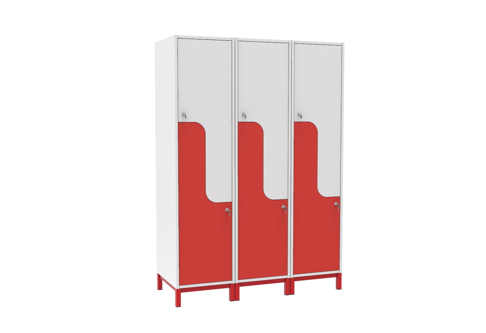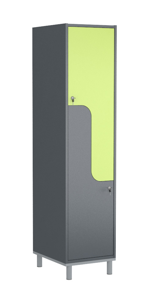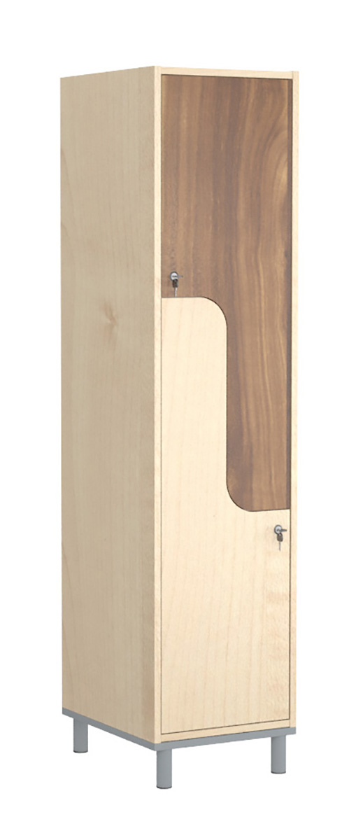 Praktikus és kedvező árú bútorlapos öltözőszekrényeink Z-ajtós változata szűkösebb térben, nagyobb létszámú személyzeti öltözők elrendezését segíti. Kialakítása ugyanakkor kedvez a használóinak akár hosszabb ruháik akasztására is. A bútorlap felület meleg érzetet nyújt. Az ajtó és a korpusz 18 mm vastag laminált bútorlapból készül, ABS élzárással. A hátfal HDF lemezből van. A lábtartó keret 40×20 mm-es zártszelvényből, míg a lábak 30×30 mm-es zártszelvényből készülnek. A lábak végén szintezhető dugó van a padló egyenetlenségeinek kiküszöbölésére. A Fitt öltözőszekrények alapfelszereltsége: ruhaakasztó rúd ruhakampóval, két kulcsos biztonsági zár, hátoldali szellőztető.