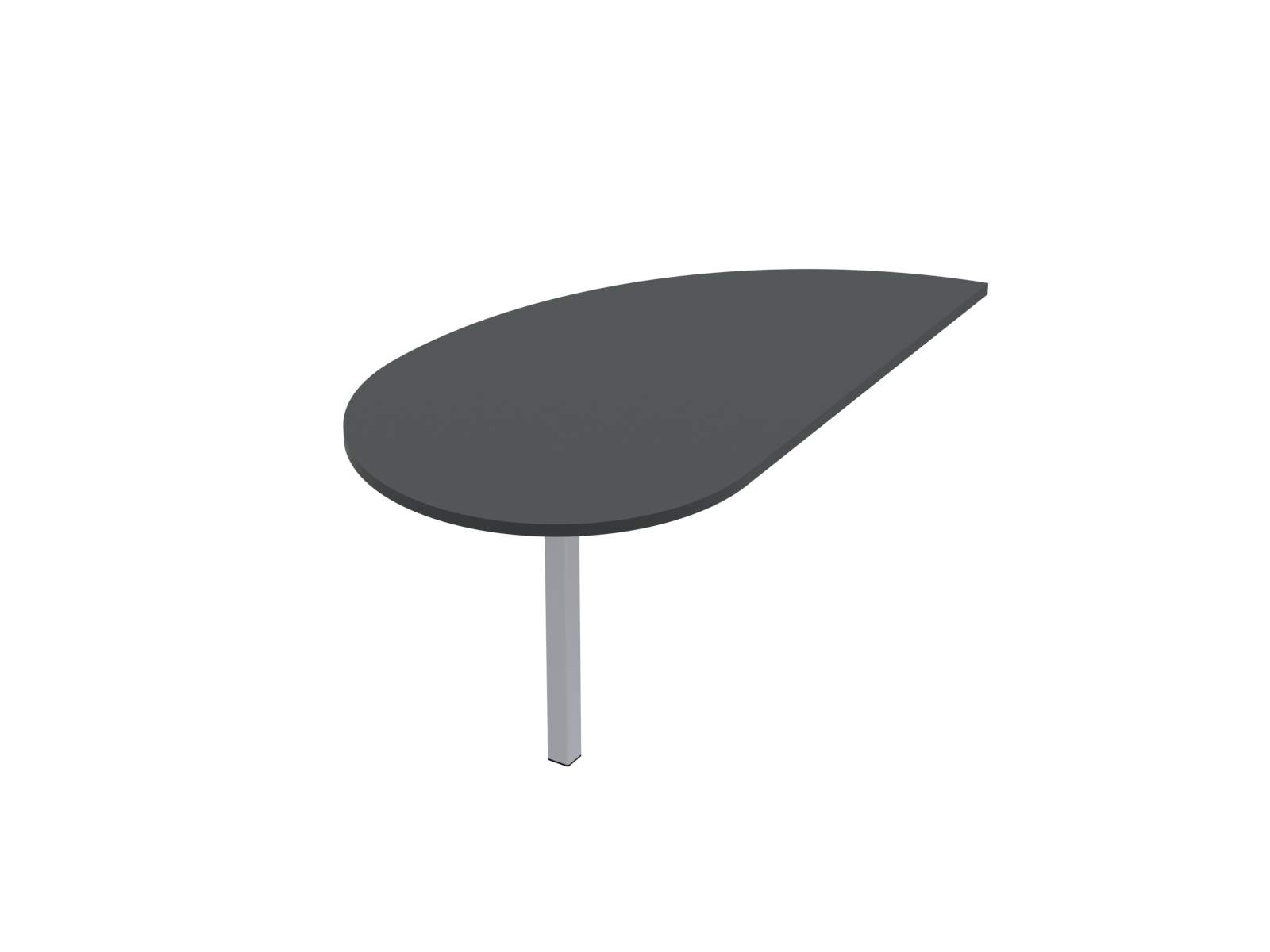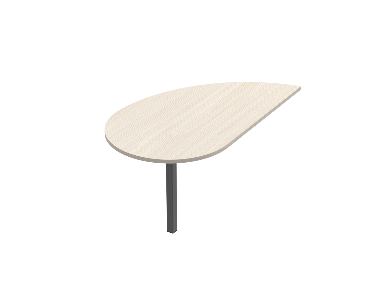 Az asztallap 25 mm vastag laminált faforgács lap 2 mm-es ABS élzárással, csepp alakú, 80 cm-es egyenes csatlakozó résszel, elektrosztatikus porszórással felületkezelt 50x50x2 mm-es acél zártszelvény lábbal, szintezhető lábdugóval.