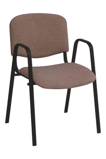 Fekete fém vázas szerkezetű, karfás ISO szék, kárpitozott ülőfelülettel, és háttámlával. Hátlap szivacs: 25 mm, ülőlap szivacs: 30 mm, rétegelt falemez háttámla és ülőlap panel, műanyag ülőlap burkolat, rakásolható kivitel. Teherbírás: 110 kg. A feltűntetett ár C szövetkategóriára érvényes. ISO termékcsaládunk székei minőségi króm, illetve elektrosztatikusan porszórt acél vázzal készülnek. Rakásolható kivitelben, valamint három küldönböző opcióban rendelhetőek: karfával, írólappal, sorolóelemmel.