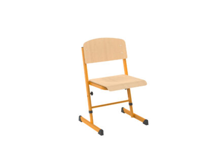 A szék egymásra rakásolható kivitelű, teleszkópikusan egymásba csúszó 38 x 20 mm-es és 34 x 16 mm-esoválcsövek segítségével állítható. 3 fix korcsoporti magasságra lehet beállítani a széket, piskóta alakú horony segítségével. A marokcsavar kitekerésével a rögzítő tönk benyomható,így csúsztatható láb a következő helyzetbe, melynek aktuális korcsoporti szín és szám megjelölését a láb külsején levőlyukon keresztül láthatjuk. Az ülés és a támla lakkozott, idompréselt bükk rétegelt lemezből készül. Gerincvédő kivitel.