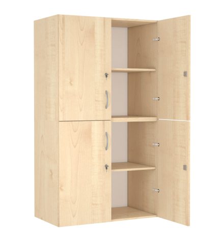 4 ajtós, 3 polcos, középen osztott szekrény