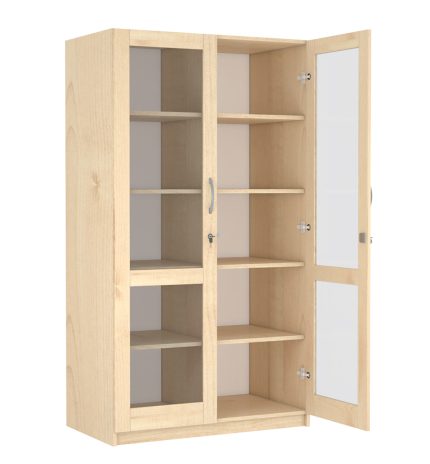 4 középen osztott polcos üvegajtós szekrény