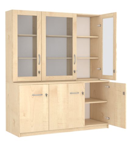 3 polcos, 3 üveg és 3 teli ajtós szekrény