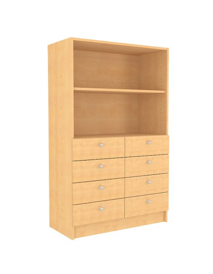Óvodák és bölcsődék számára kialakított óvodai szekrény. A Plutó óvodai bútor (bölcsődei bútor) polcos, fiókos eleme 18 mm-es laminált bútorlapból, ABS élzárással készül. Szoklis kivitel, felső része nyitott, 1 db polccal, alsó része 8 db fiókkal, fa fogantyúval. Választható korpuszszínek: Európai Juhar, Savaria Bükk, Beige vagy Világos Szürke. A letisztult formavilággal rendelkező Plutó termékcsalád egyes elemei szabadon variálhatóak, így egyedi szekrénysorok összeállítására is lehetőség nyílik.