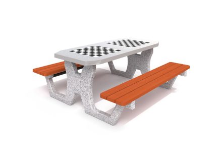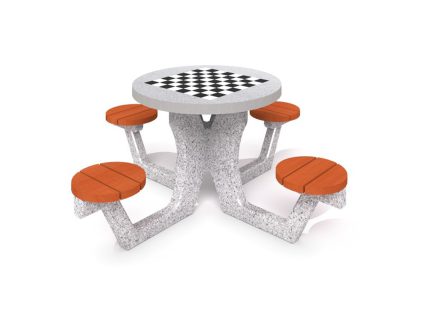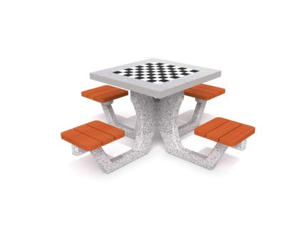 A termék projektek kapcsán rendelhető. A projektegyeztetéshez és kapcsolatfelvételhez kérjük tájékoztasson minket a projekt tervezett bútorigényéről – felsorolva az Alex kínálatából választott termékeket és azok mennyiségi igényét - a projekt időtervéről és minden egyéb fontos adatról, ami fontos lehet. A 4 személyes asztal szett szerkezete szemcsekevert mosott betonból készül, az asztallap 90x6x90 cm csiszolt beton, választható beágyazott gres csempével kialakított játék felülettel. Az ülőfelület kétszer lakkozott fenyő deszkákból áll, mérete oldalanként 40x40 cm. Ülésmagasság 44 cm.