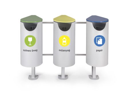 Centrál család legújabb fejlesztése a kültéri szelektív hulladékgyűjtő. Horganyzott alapanyagból, kültéri porszórt festéssel. Opcionálisan választható matricázással.