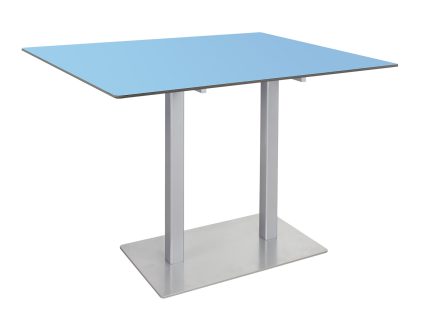 Horganyzott központi lábas, 60x60 mm-es dupla acéloszlopos asztal, 90x45 cm-es acéllemez talppal. Az acéllemez talp alján szintező talpak találhatók, amelyek lehetővé teszik a padló egyenetlenségeinek kiküszöbölését. 12 mm vastag kompaktlemez asztallappal, amely ellenáll a kültéri viszontagságoknak, maximum 120x80 cm-es méretben ajánlott. Kültéren is alkalmazható.