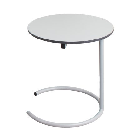 Egyedi formájú lerakóasztal, mely különleges kiegészítője lehet bármelyik kanapénak, padnak és lounge bútornak. A vázszerkezet kialakításának köszönhetően a talp az ülőbútor alá tolható, így teljesen magunkhoz húzhatjuk az asztalt, hogy kényelmesen elérjük a rá helyezett laptopot, vagy akár a csésze kávénkat. A talp elektrosztatikus porszórással felületkezelt 5 mm vastag acéllemez, a láb 22 mm átmérőjű hajlított acélcsőből készül, a palóvédelmet a lézervábott padlófilc biztosítja. Az asztallap 12 mm vastag kompaktlemez, aminek felülete karcálló, anyaga tömör, nem igényel élzárást. Terhelhetőség: 5 kg